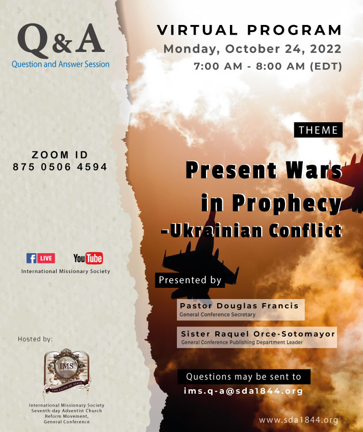 Virtual Program – Monday, October 24, 2022 Zoom ID: 875 0506 4594 Q&A Session – Present Wars in Prophecy [...]