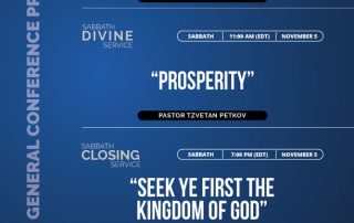 Sabbath Opening Service Friday, October 28, 7:00 PM (EDT) “Prayer, the Channel of All Blessings and Victories” Pastor Douglas [...]