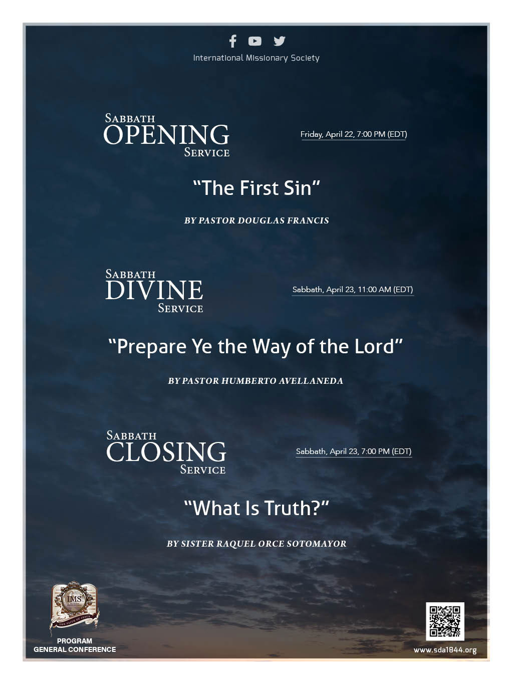 Sabbath, April 23, 7:00 PM (EDT)